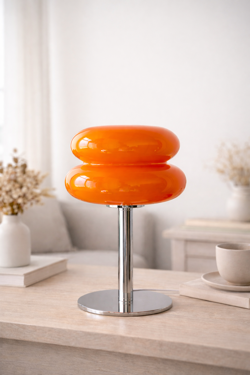 En stilren bordslampa med modern form och varm karaktär. Den lekfulla designen ger rummet en unik detalj och passar perfekt på sidobord, skrivbord eller nattduksbord.