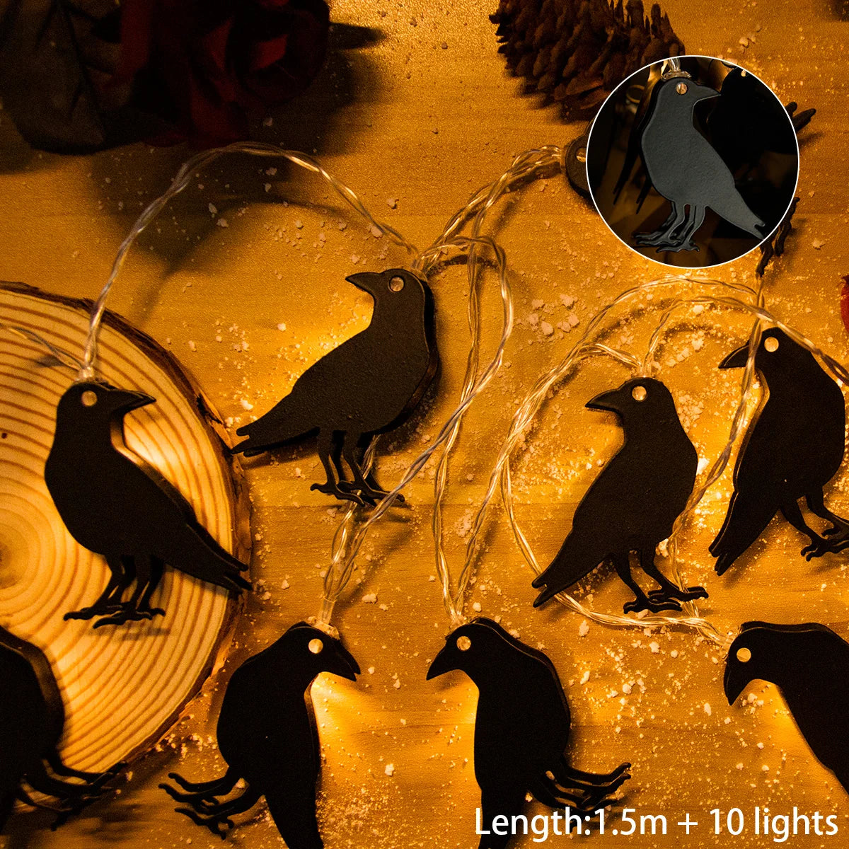 Skapa en stämningsfull atmosfär med denna dekorativa LED-ljusslinga med motiv av korpar, spindlar och fladdermöss. Slingan är 1,5 meter lång och försedd med 10 små lampor som sprider ett varmt och lekfullt sken. Perfekt för halloweenfesten, i barnrummet eller som en detalj i hemmet under hösten. Ljusslingan är lätt att placera i fönster, på hyllor eller runt dörröppningar. Tillverkad i hållbar plast och med energieffektiva LED-lampor som gör den enkel och säker att använda.