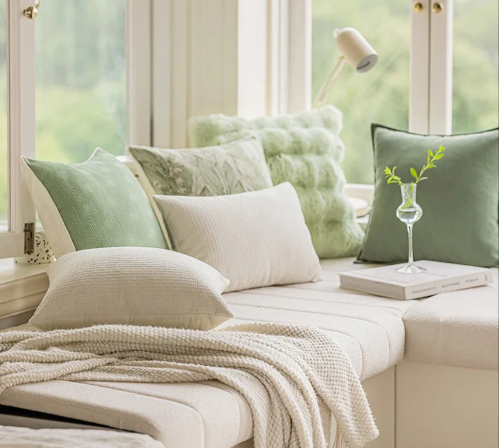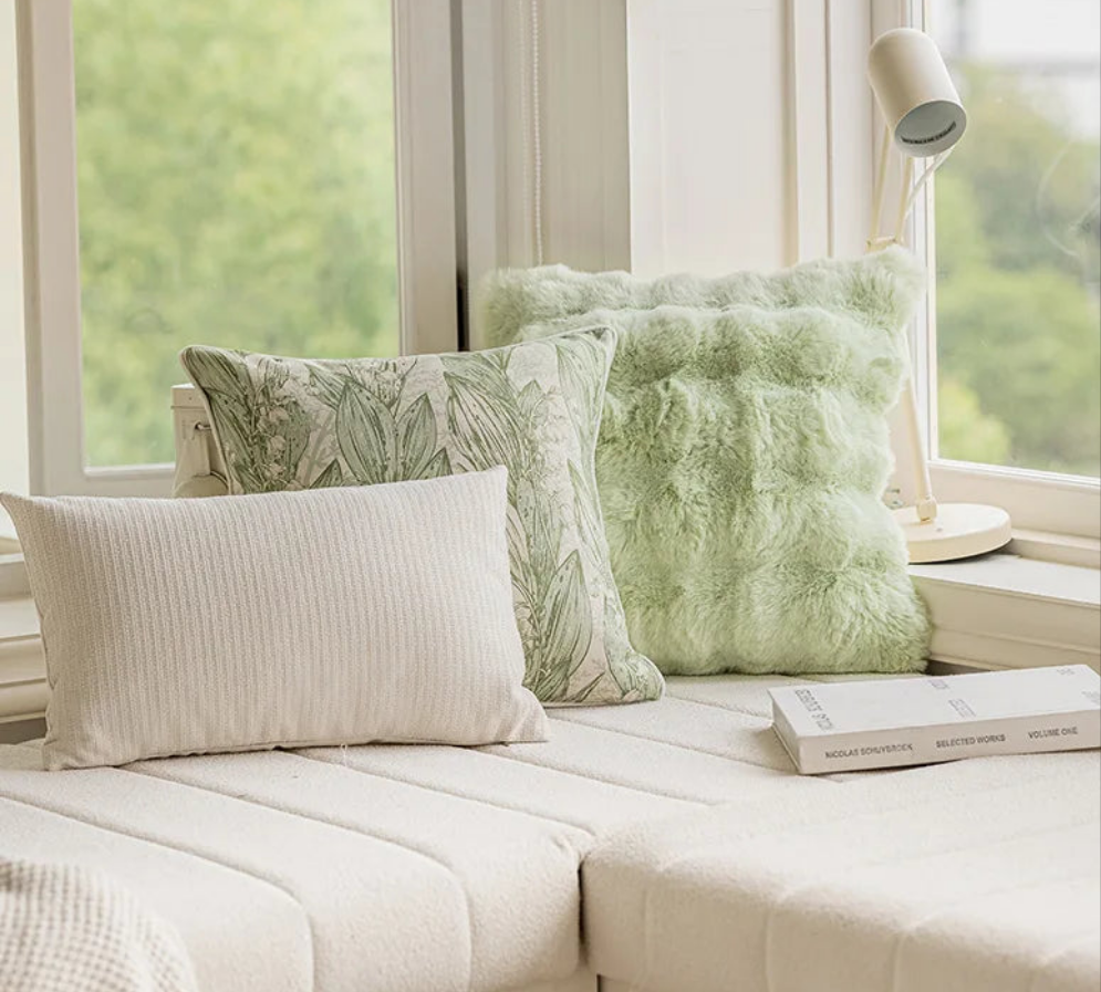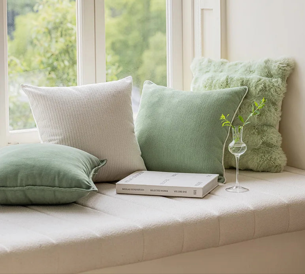 Ge ditt hem en lugn och modern känsla med vår runda kudde i matcha-grön bubbelplysch. Den mjuka texturen och stilrena designen passar perfekt i soffan, fåtöljen eller på sängen. En enkel men lyxig detalj som lyfter hela rummet.